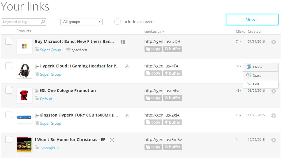 When you're creating a lot of links and promotions, it gets tough to keep track of which links were used for what campaign. Use Groups to sort your links by campaign, product type, and more.